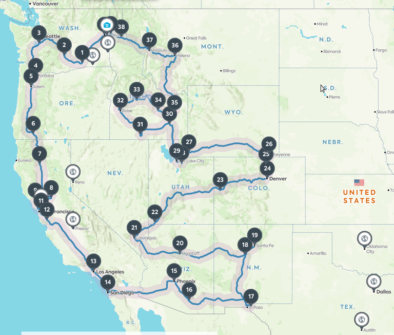See the Route Details & Map of the Great Western USA RPG Tour on Roadtrippers
